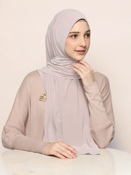 • Hijab: Soft Pad, overlap stitch, cuttingan curved di bagian belakang